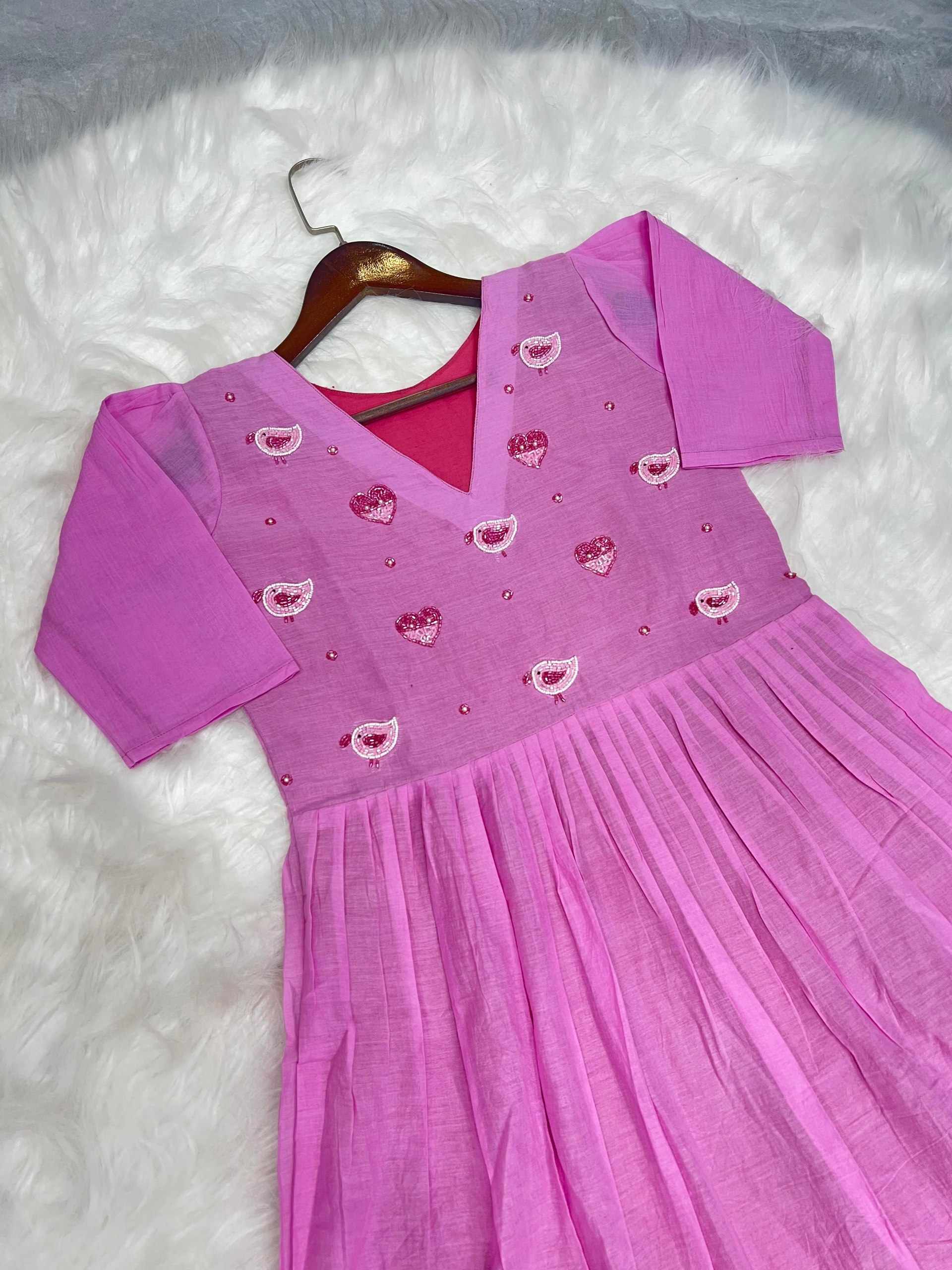 WM14 Pure Mul Mul Cotton Handwork Kurti with Padding Design
