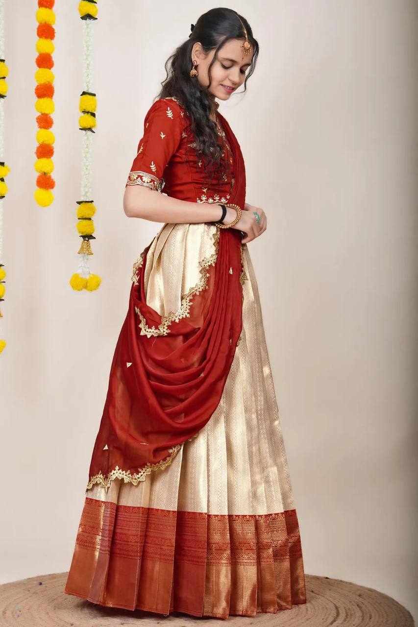 Name : | KPW 331 traditionl Kanjiveram Silk Zari Lehanga |
