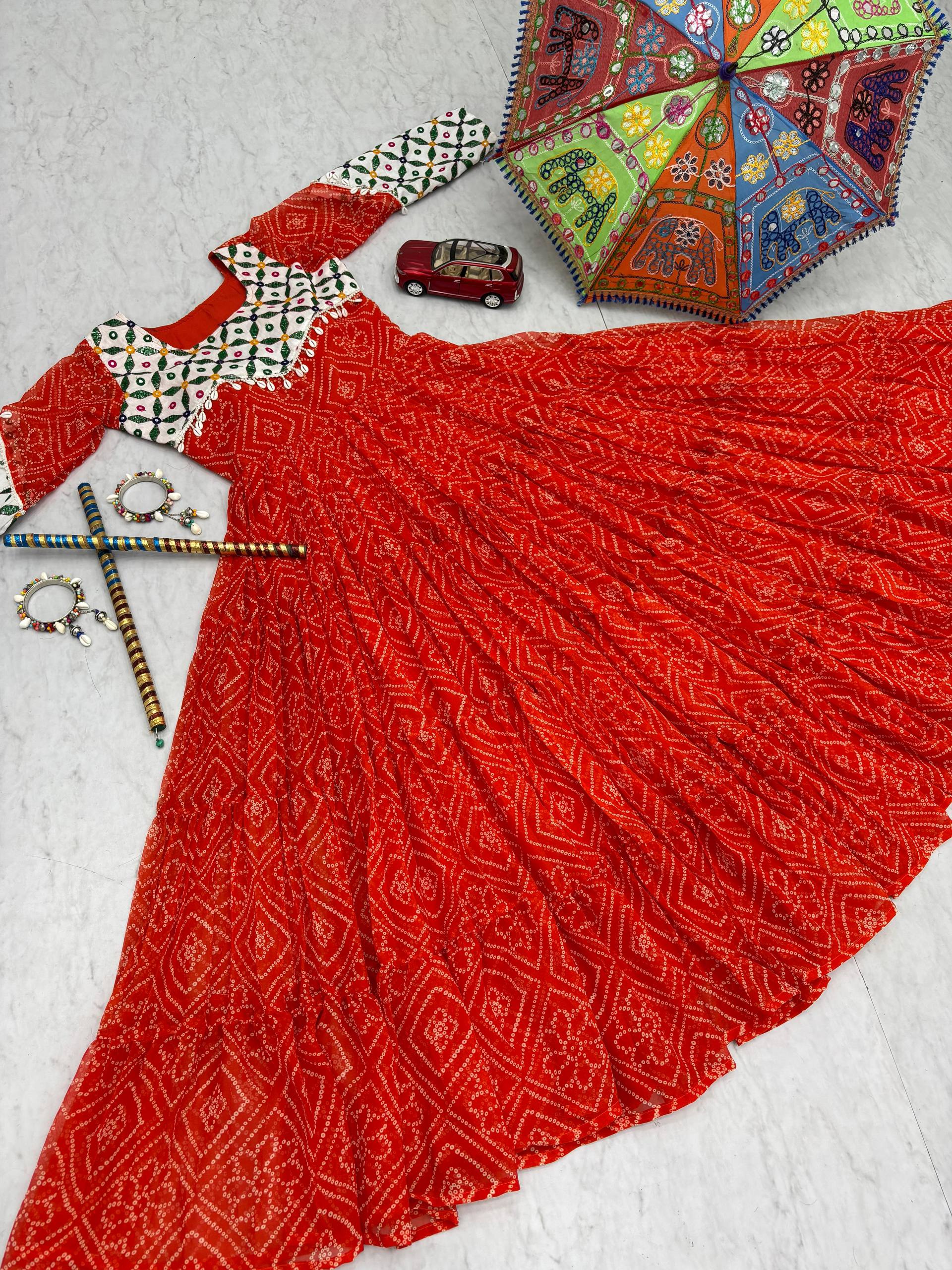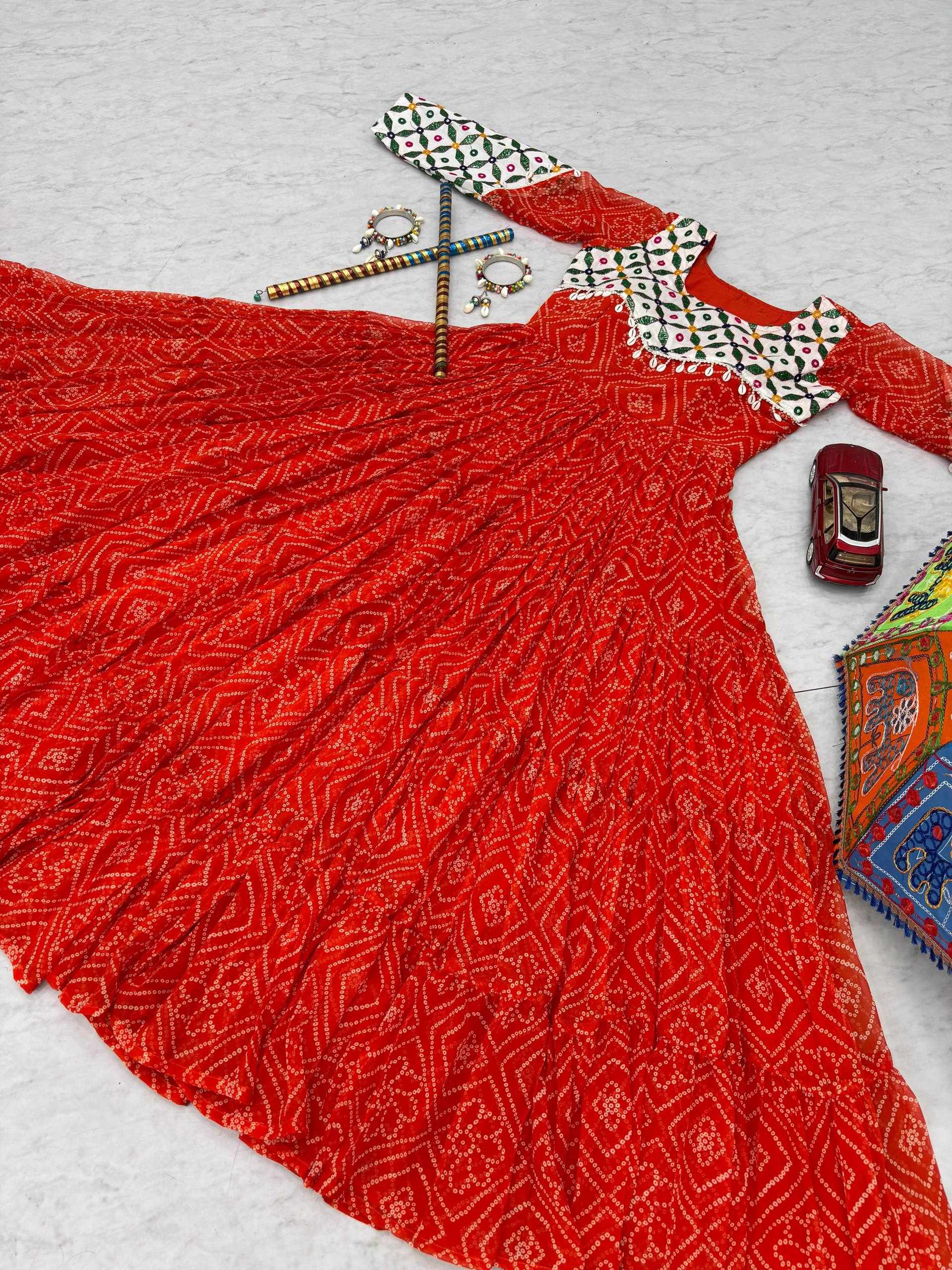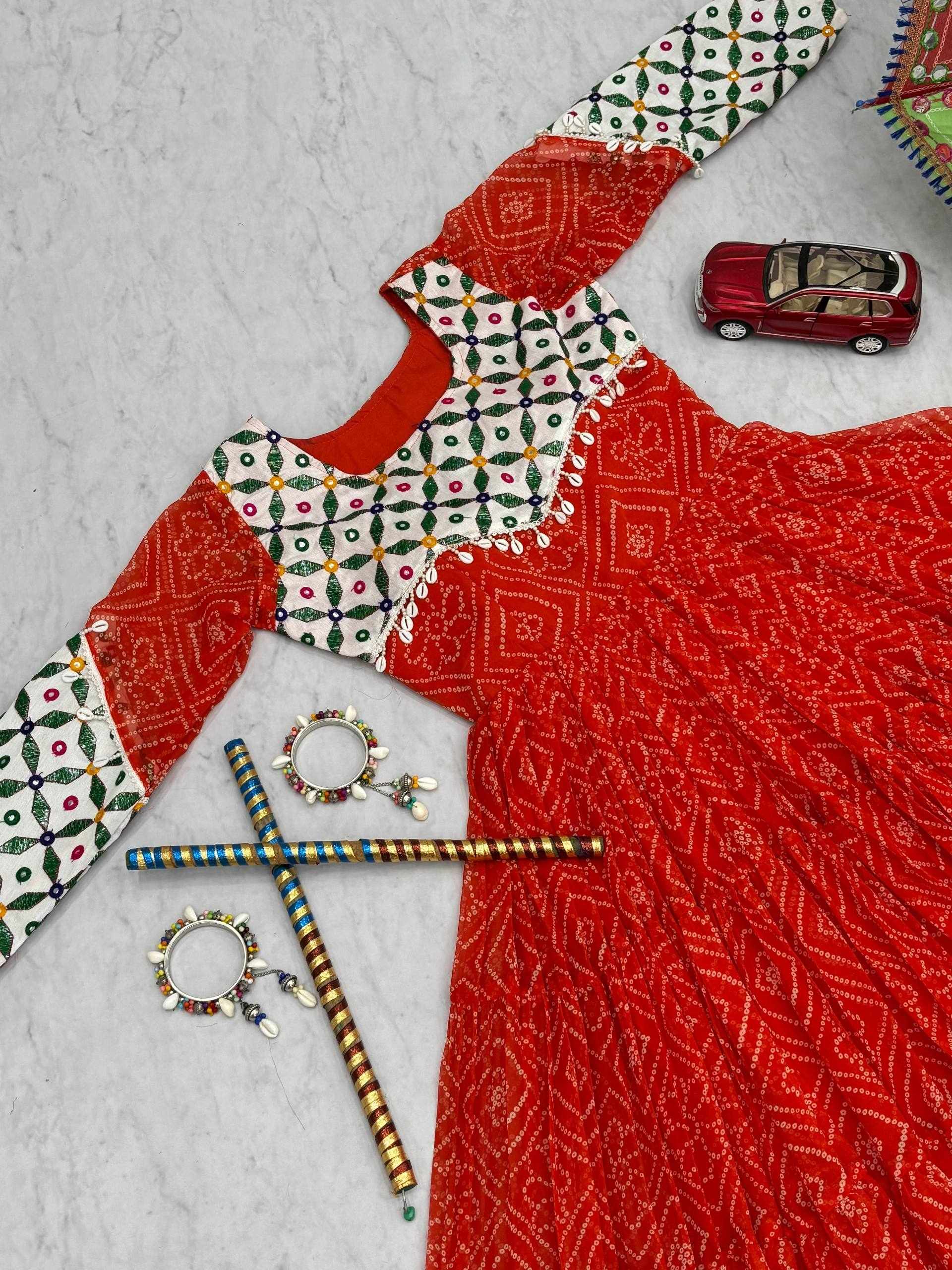 Name : | Pc N42 Fox Georgette Gamathi Work with Kodi Lace Navratri Special Gown |