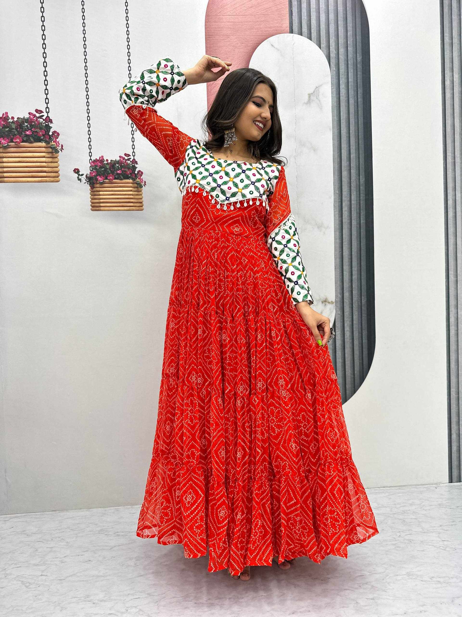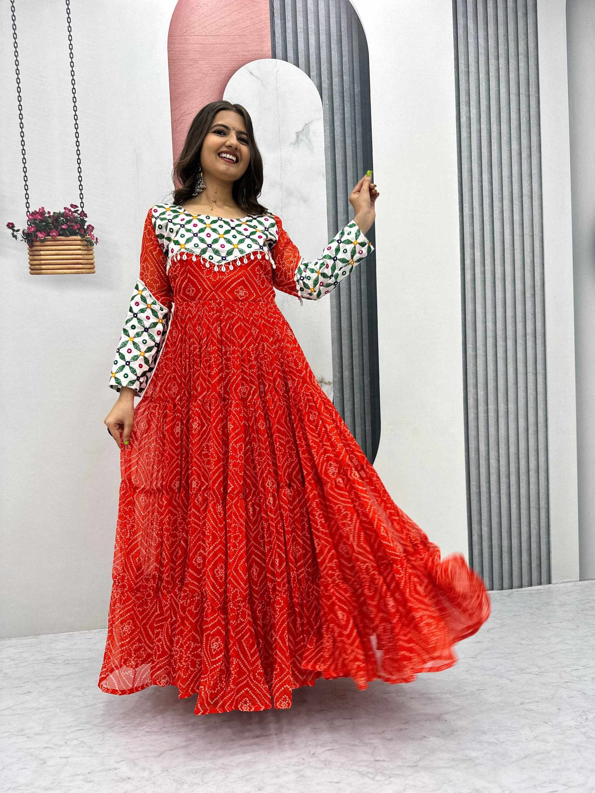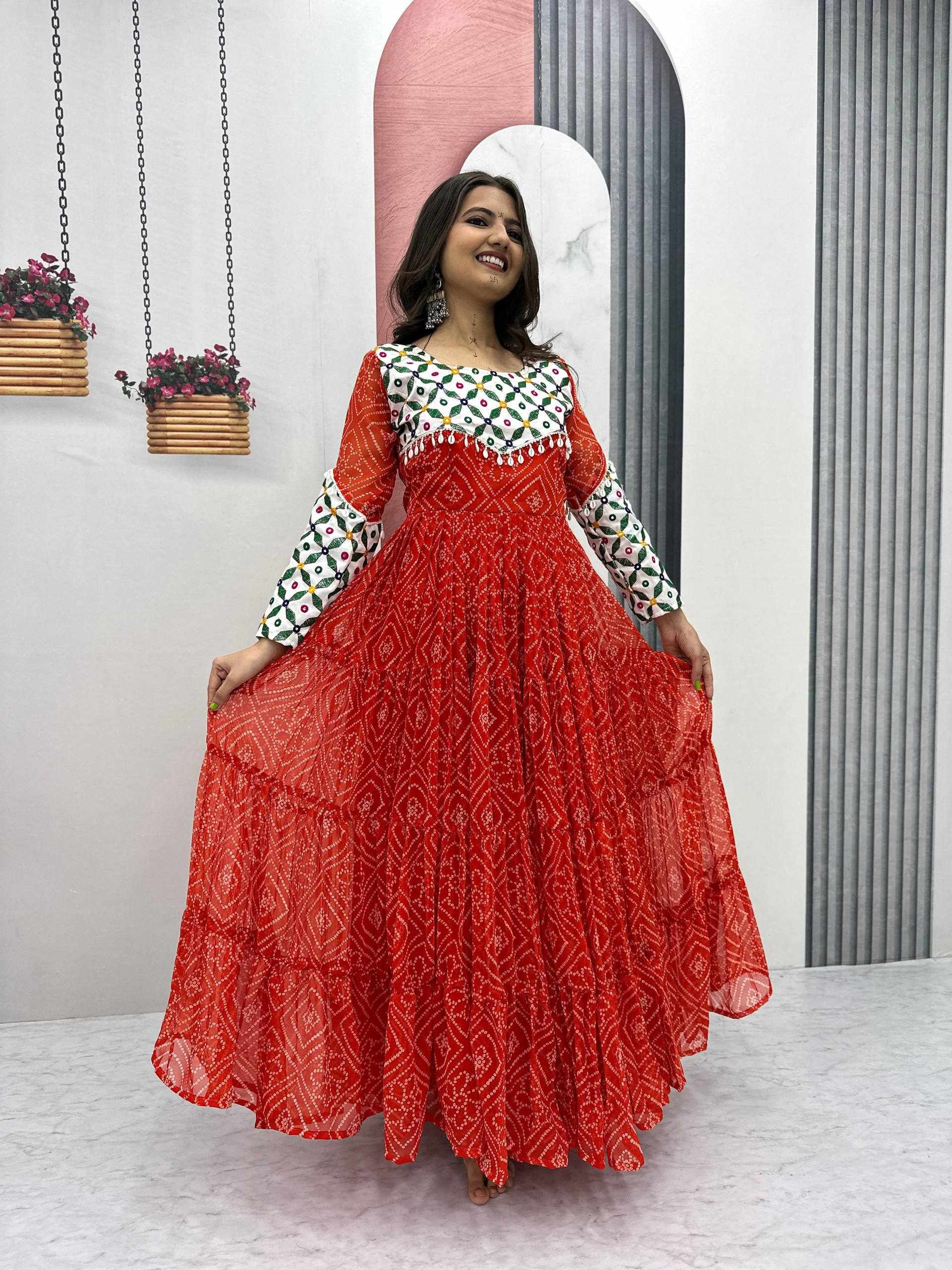 Name : | Pc N42 Fox Georgette Gamathi Work with Kodi Lace Navratri Special Gown |