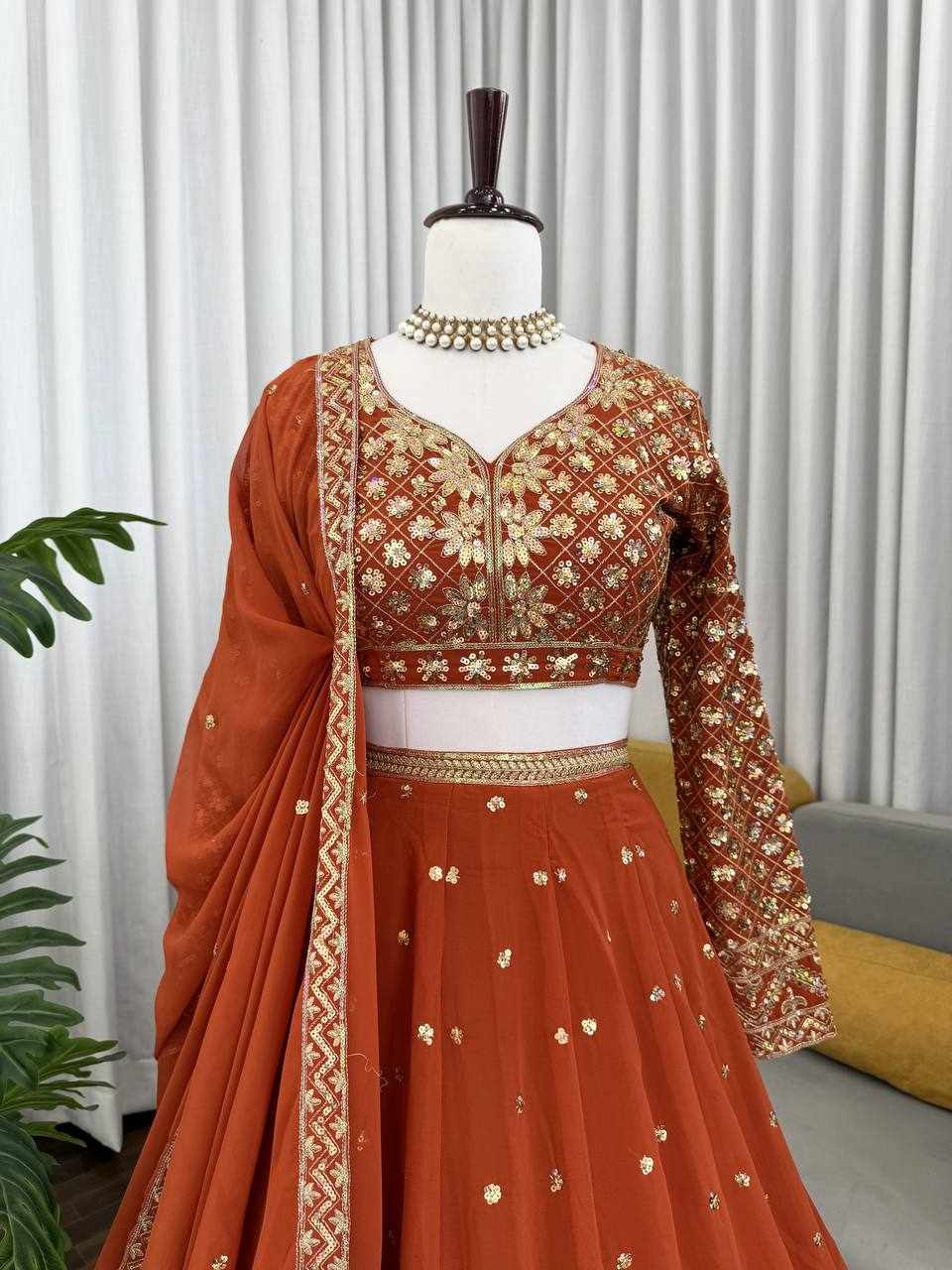 QRC 375 Foux Gorgette Heavy Designer Lehenga