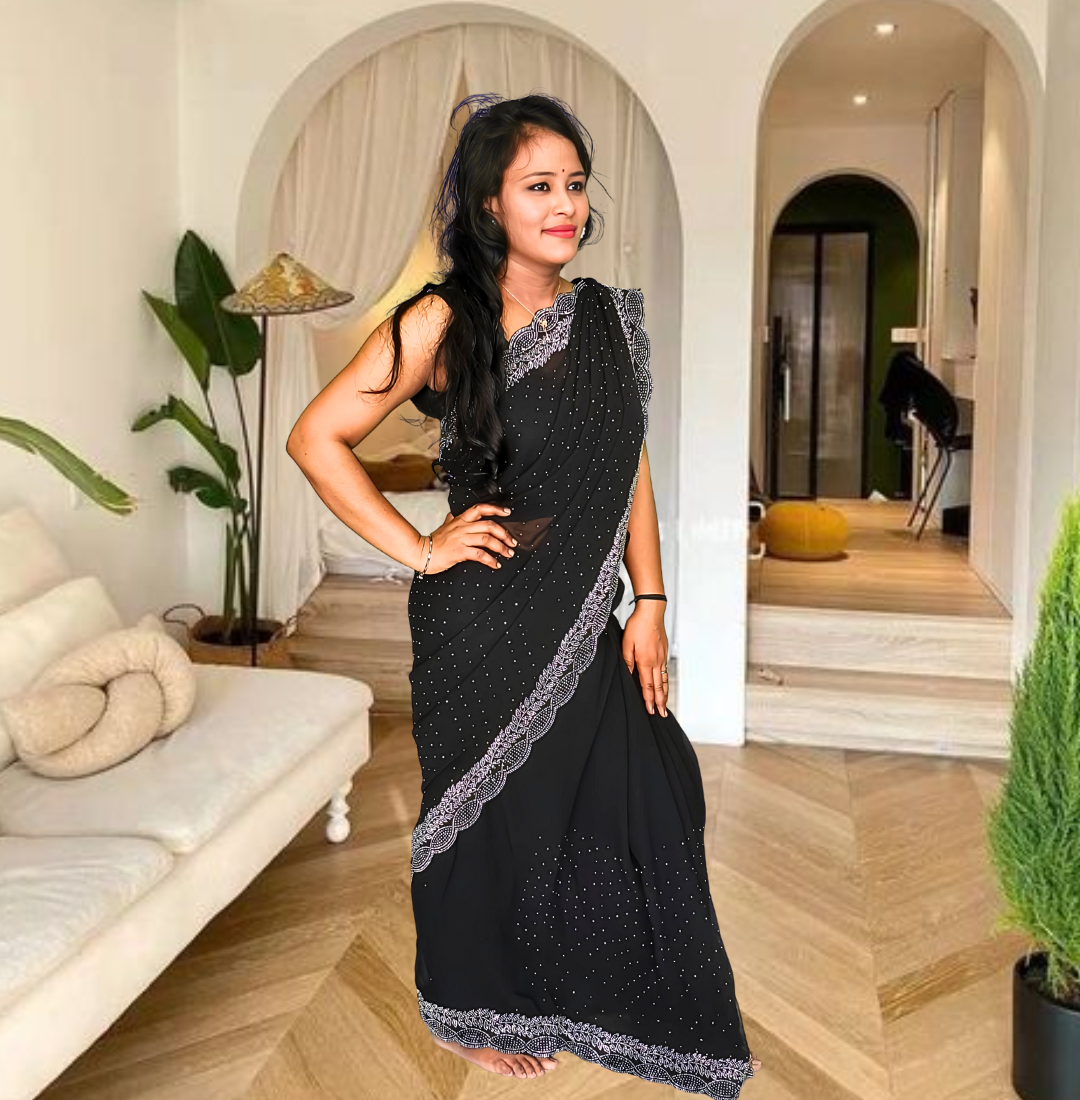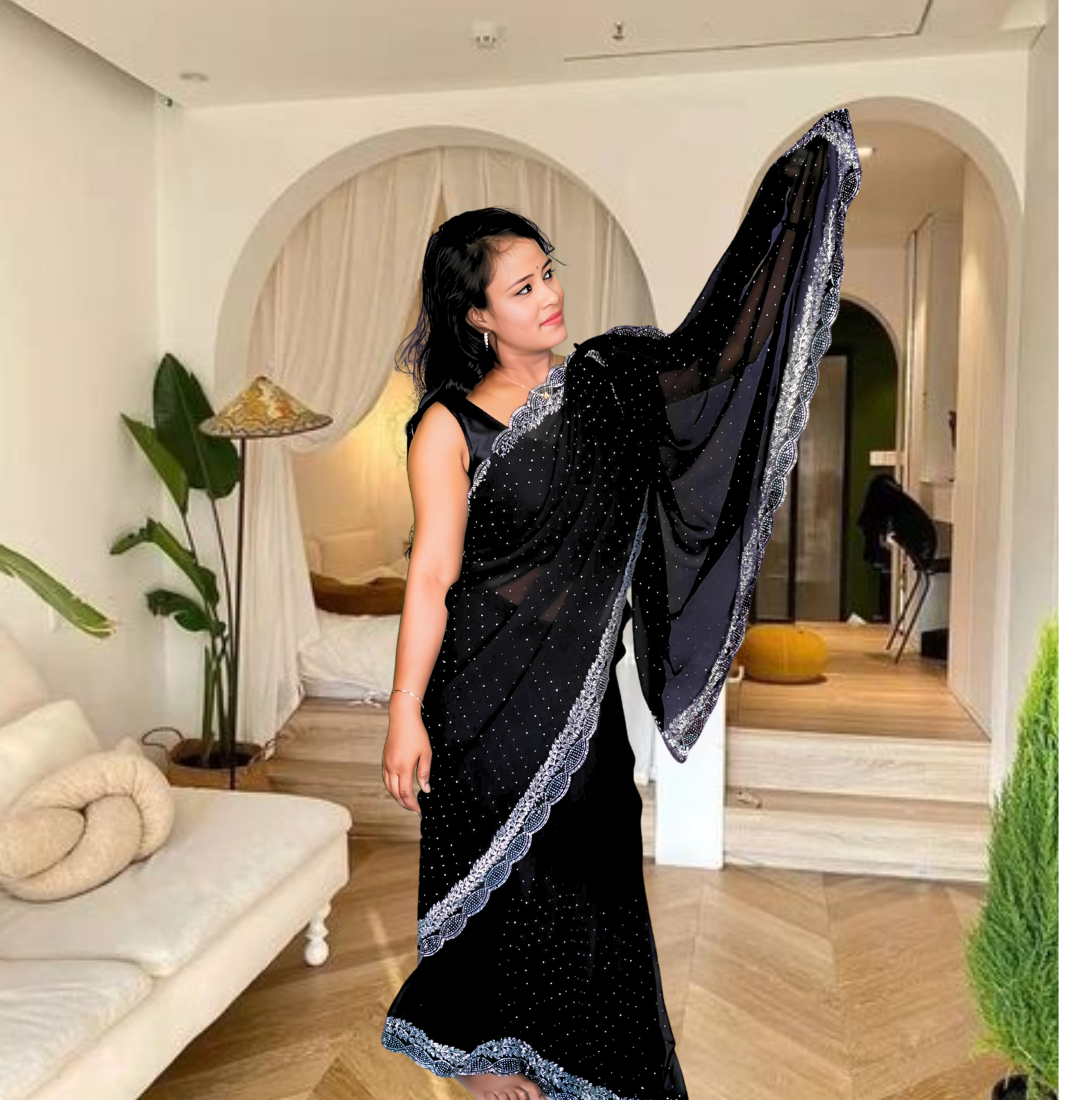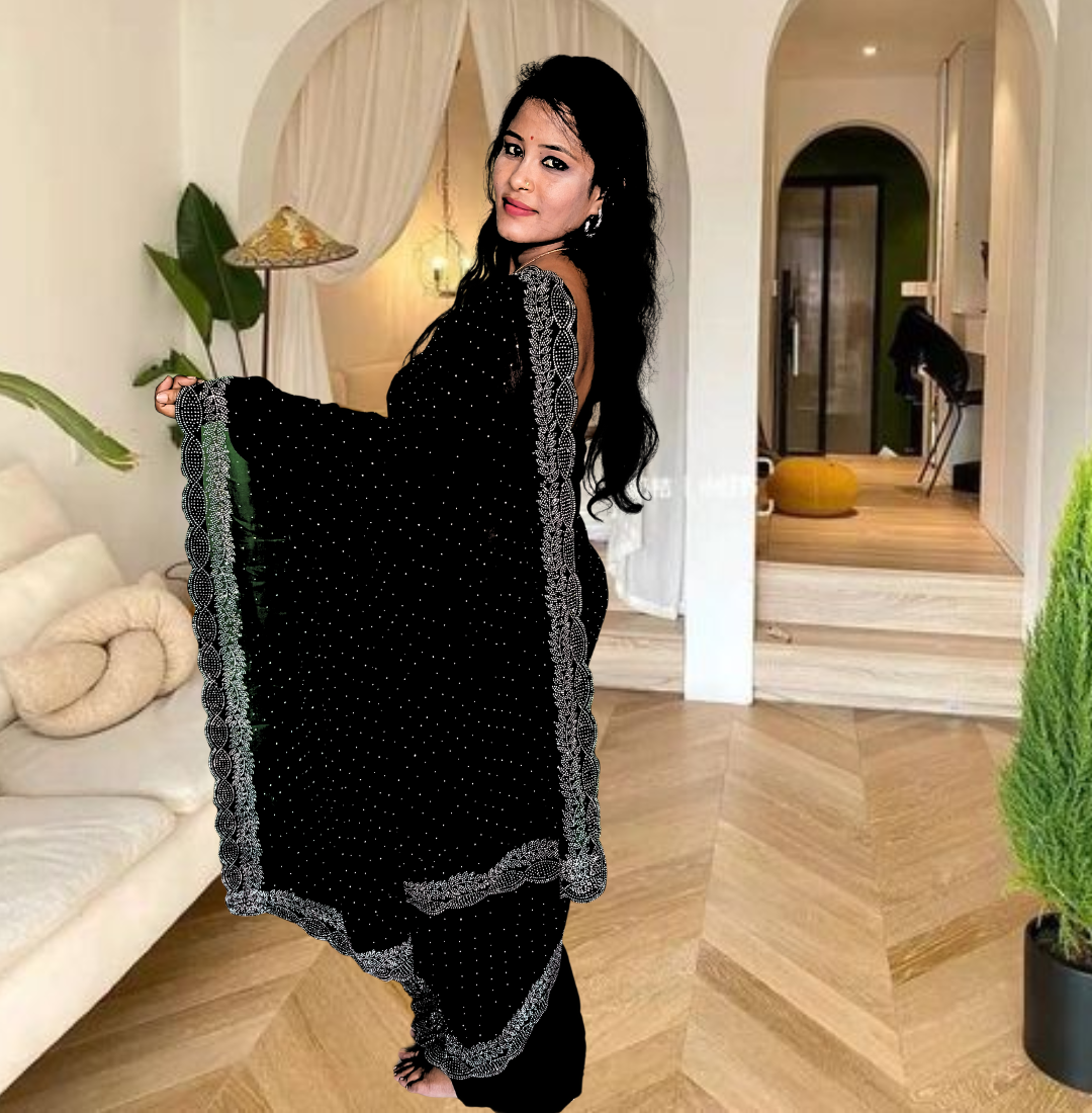 S4s Black Karishma Siroski Stones Lace Georgette Party Wear Saree