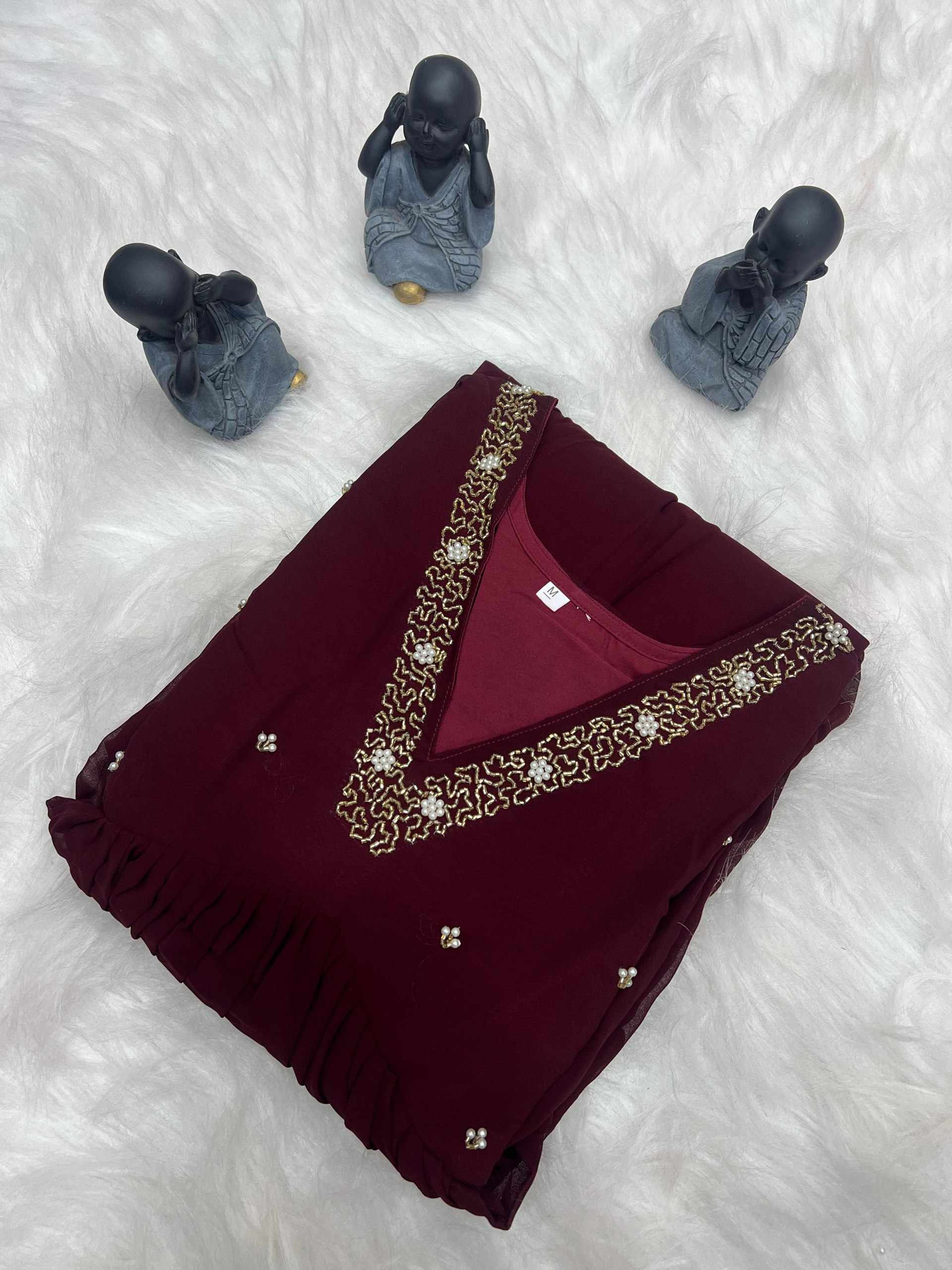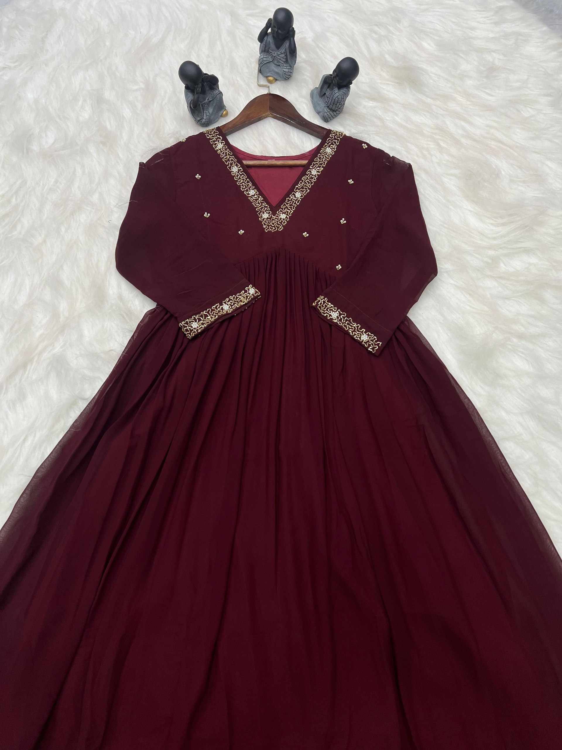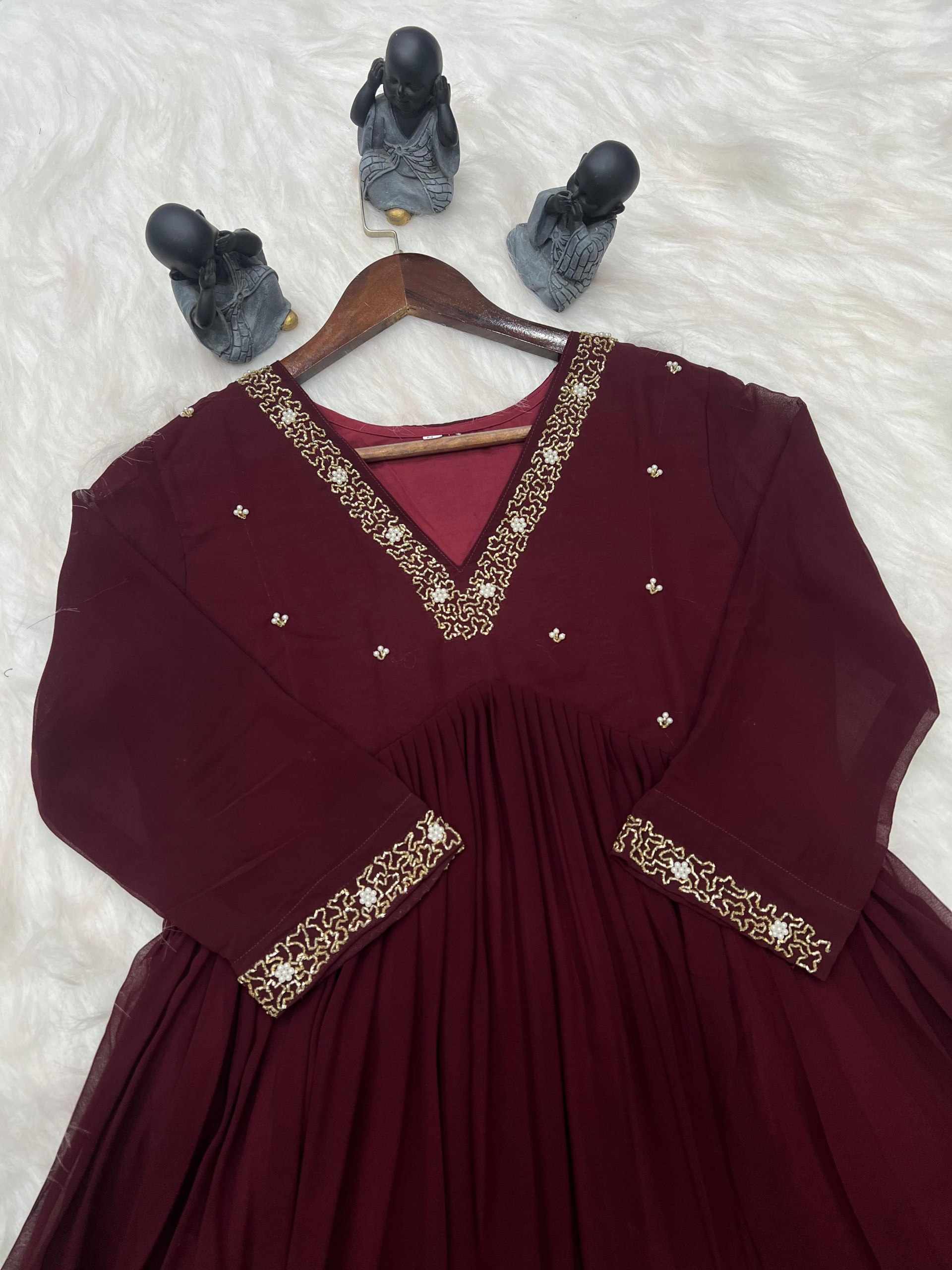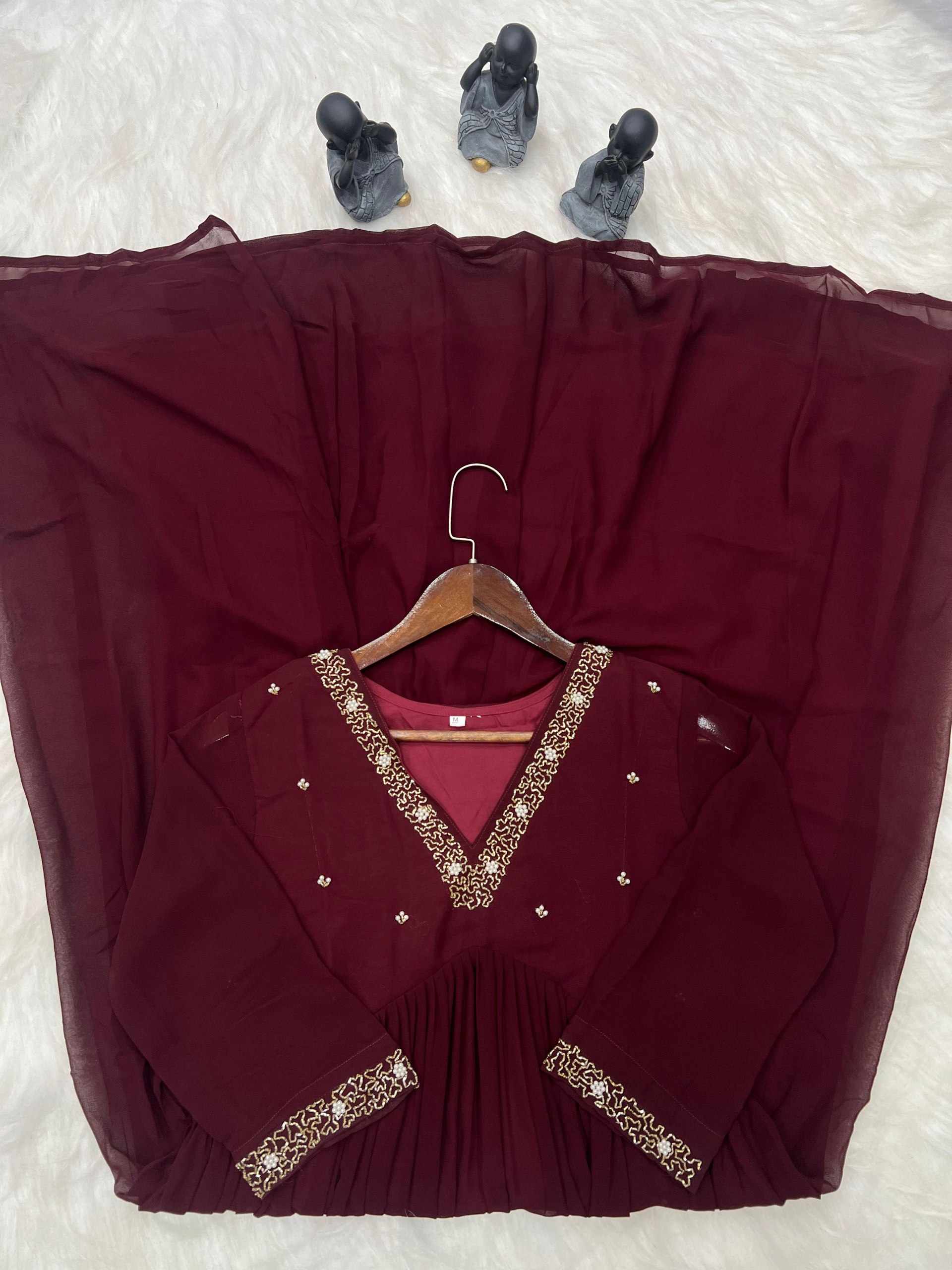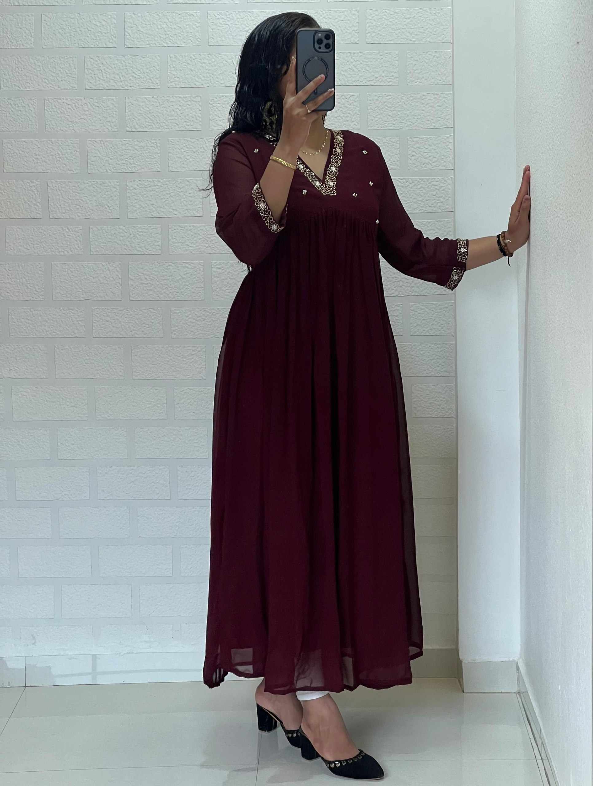 Name : | WM10 MARRON BLOOMING GEORGETTE HANDWORK KURTI |